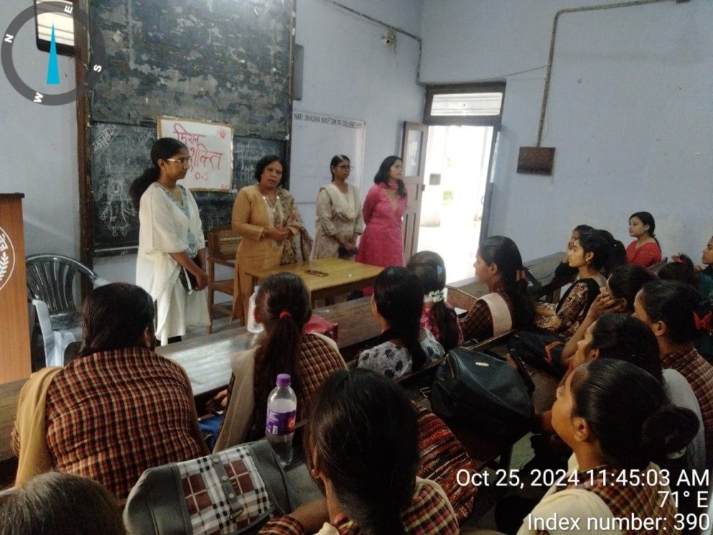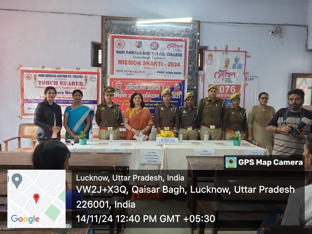 मुख्य अतिथि श्री चंद्रशेखर त्रिपाठी द्वारा छात्राओं को विभिन्न कानूनों, अधिकारों और हेल्पलाइन नंबरों की विस्तृत जानकारी दी गई।