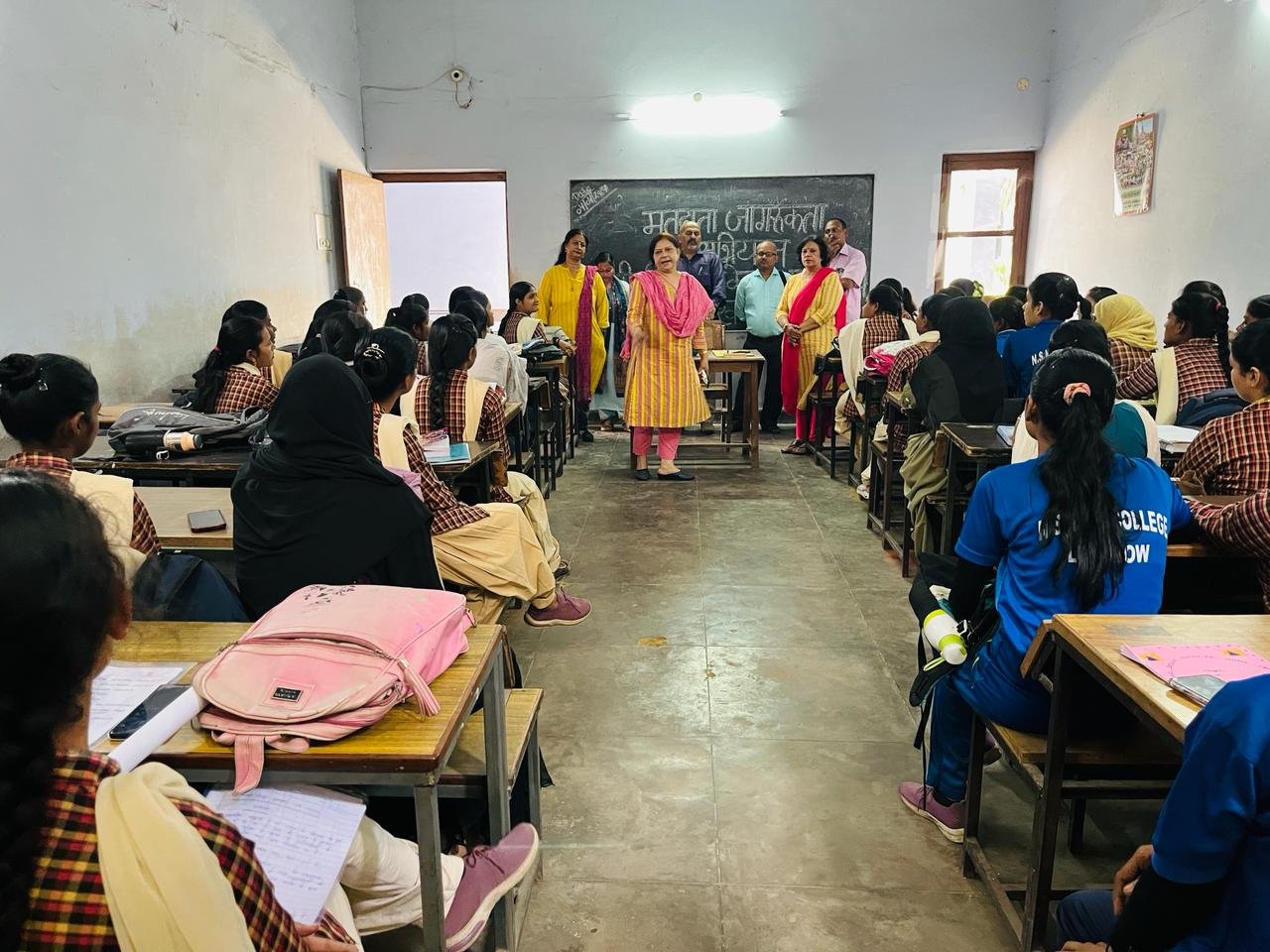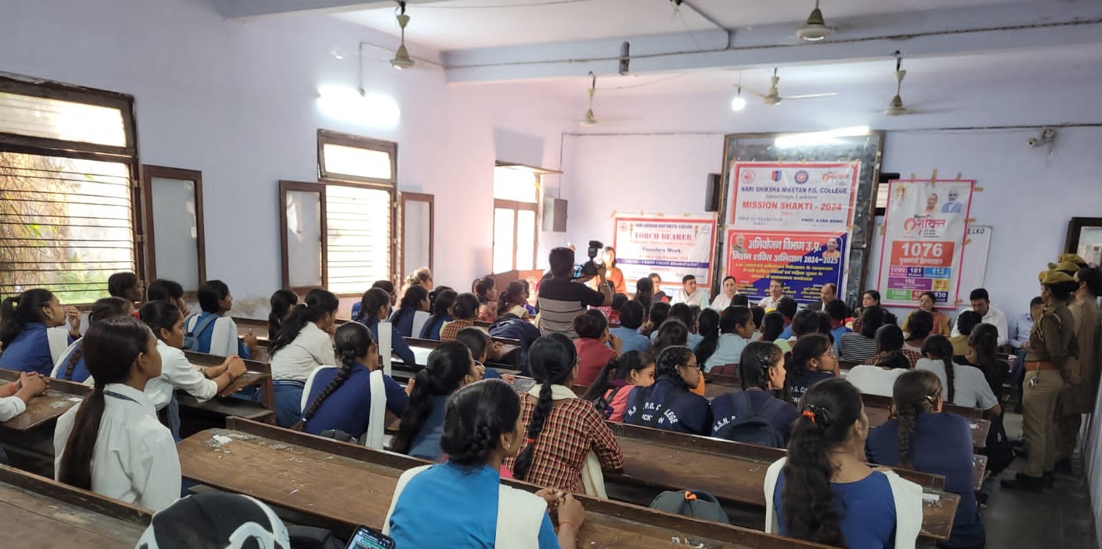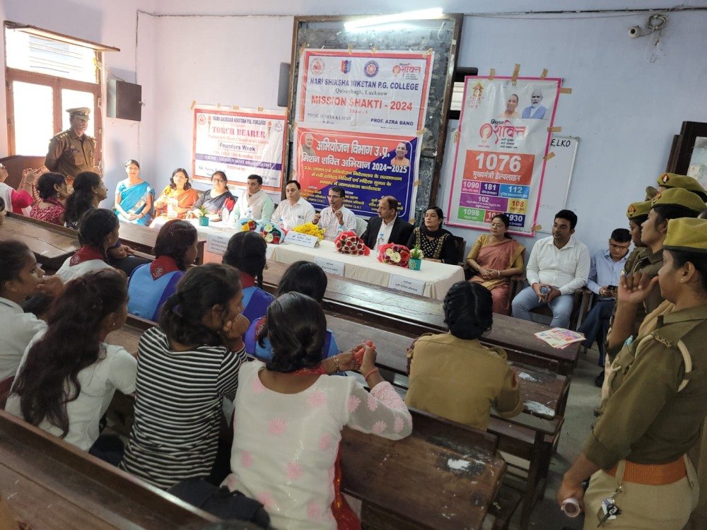 मुख्य अतिथि श्री चंद्रशेखर त्रिपाठी द्वारा छात्राओं को विभिन्न कानूनों, अधिकारों और हेल्पलाइन नंबरों की विस्तृत जानकारी दी गई।
